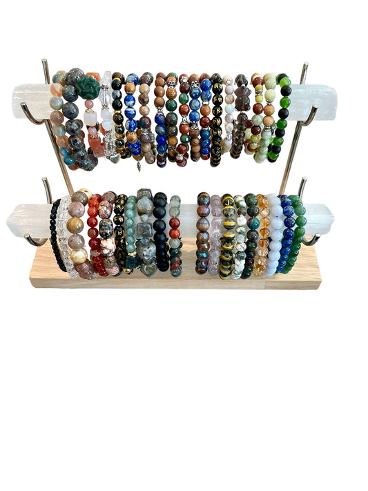WHY CHARGE YOUR BRACELETS ON A SELENITE BRACELET HOLDER? Energy Cleansing: Selenite is known for...