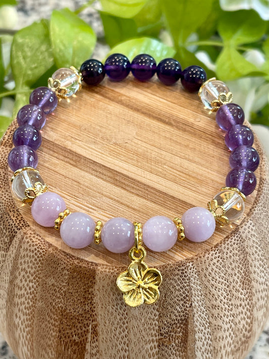 Amethyst, Kunzite, Clear Quartz; Stress & Anxiety Relief, Self Love & Acceptance