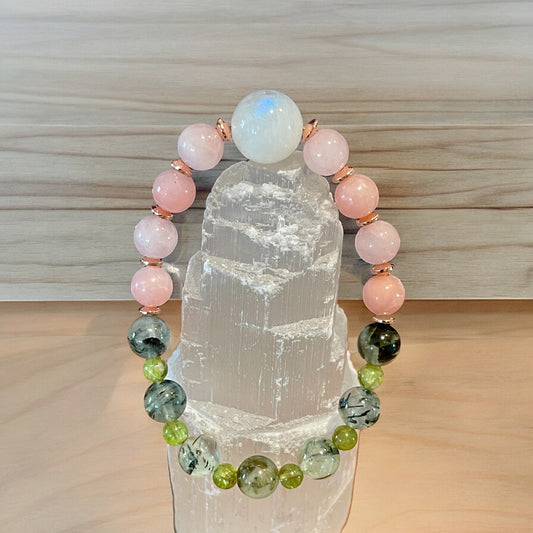 Introducing a captivating crystal bracelet that beautifully combines the healing energies of rhodochrosite, rose quartz,...