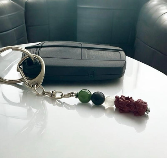 Pixiu Cinnabar, Selenite, Black Jade, Green Jade | Wealth and Protection Energy Keychain