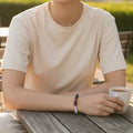 At the center is the Cinnabar Buddha stone. It invites wealth, abundance, and prosperity. The combination of stones is designed to enhance your life's positive aspects. This powerful piece is a symbol of protection and prosperity, making it a valuable accessory for your daily wear.