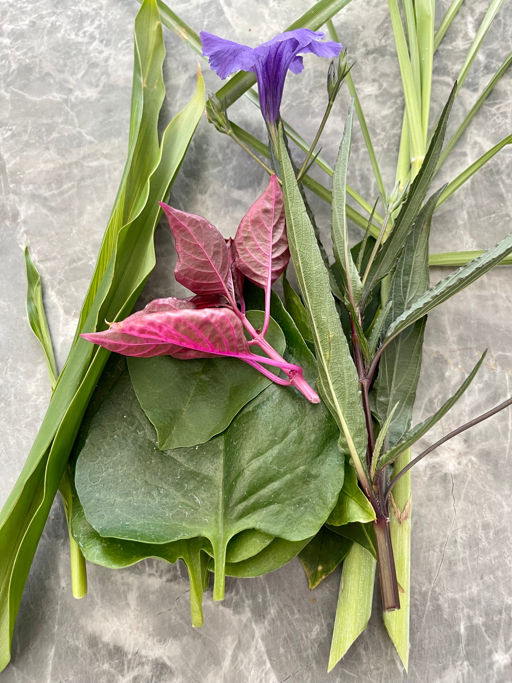 There are five to six different types of herbal plants from my garden for tea or soup. These have been part of our family for the last two generations. The origination comes from the mountains of Laos/Thailand and I now grow them in California.