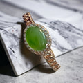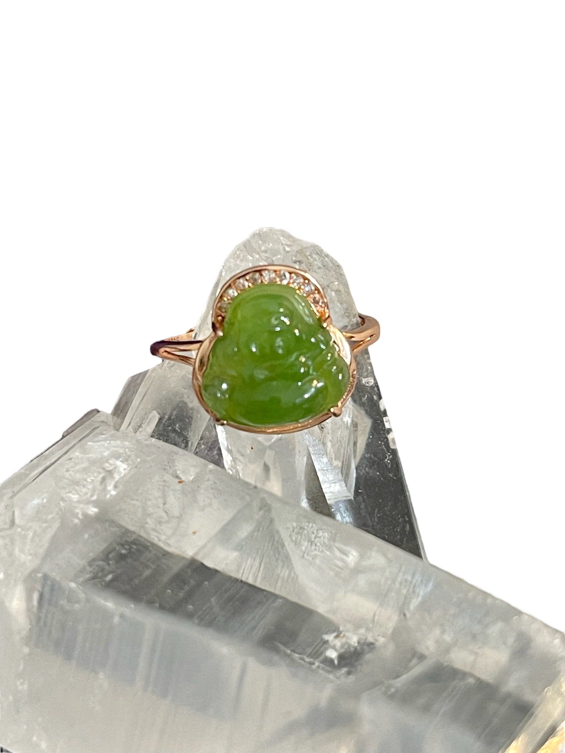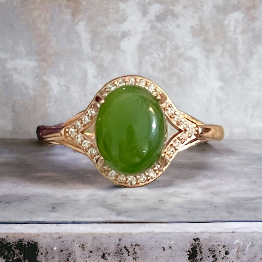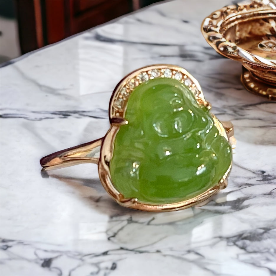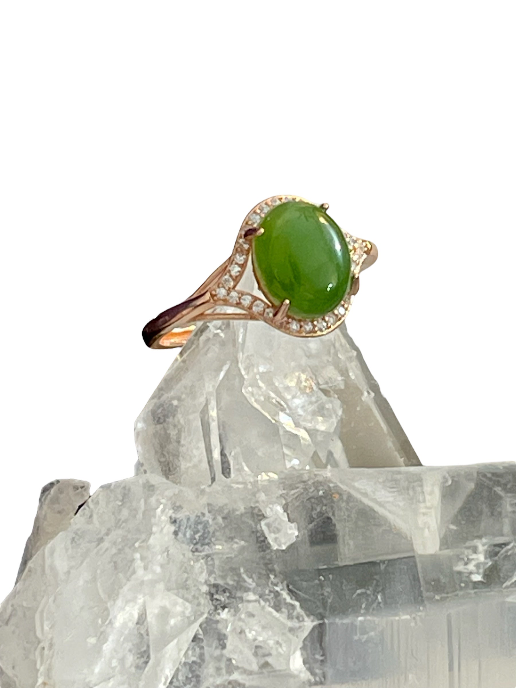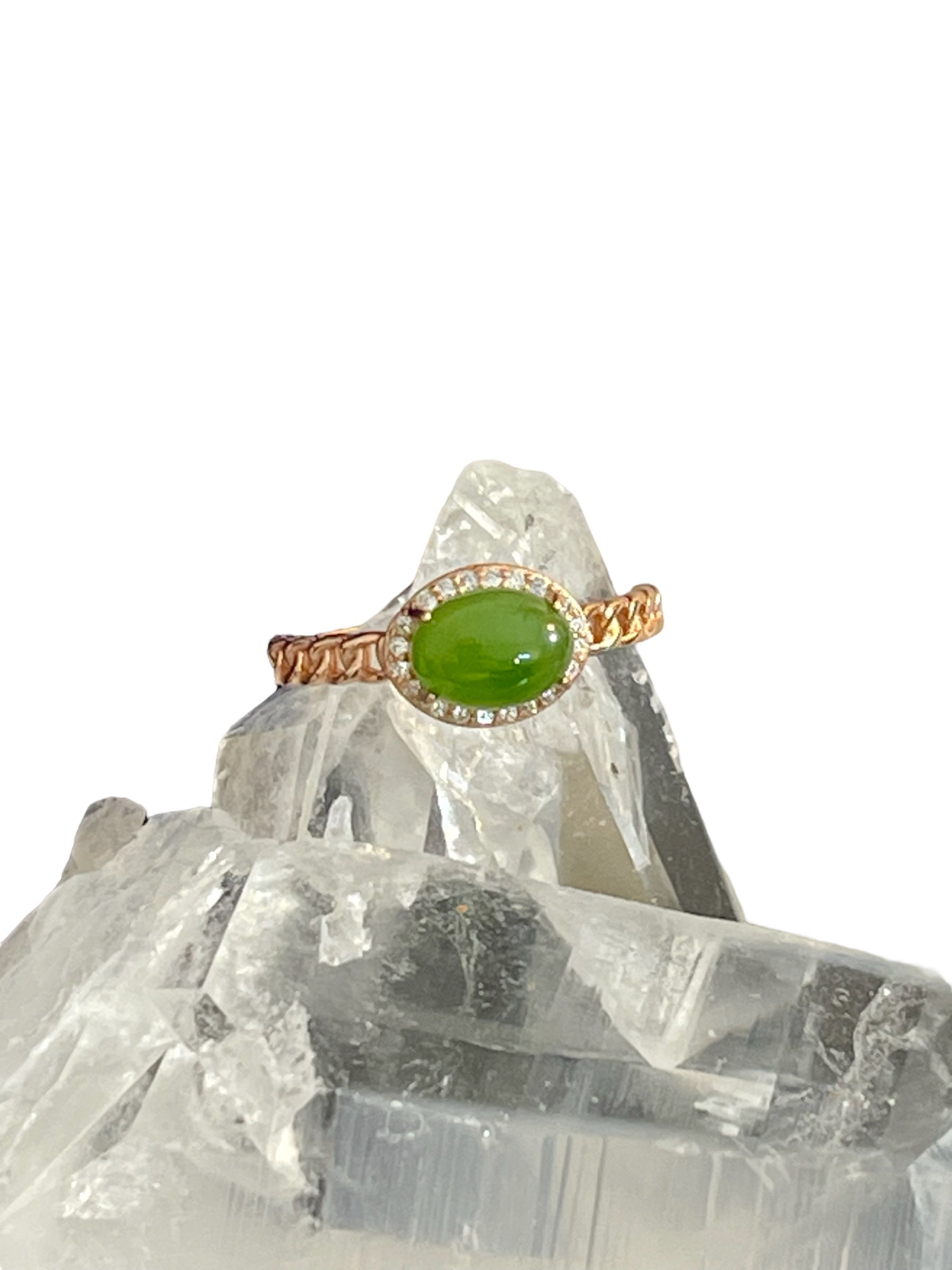 Symbolic Significance: Green jade has a rich cultural history and is often associated with qualities like harmony, balance, and prosperity in many cultures. Wearing a green jade ring can symbolize a connection to these values and traditions.