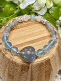 This bracelet showcases a harmonious blend of Labradorite Heart, Aquamarine, Snowflake Quartz, and Labradorite stones, each contributing their unique properties to create a truly remarkable accessory.