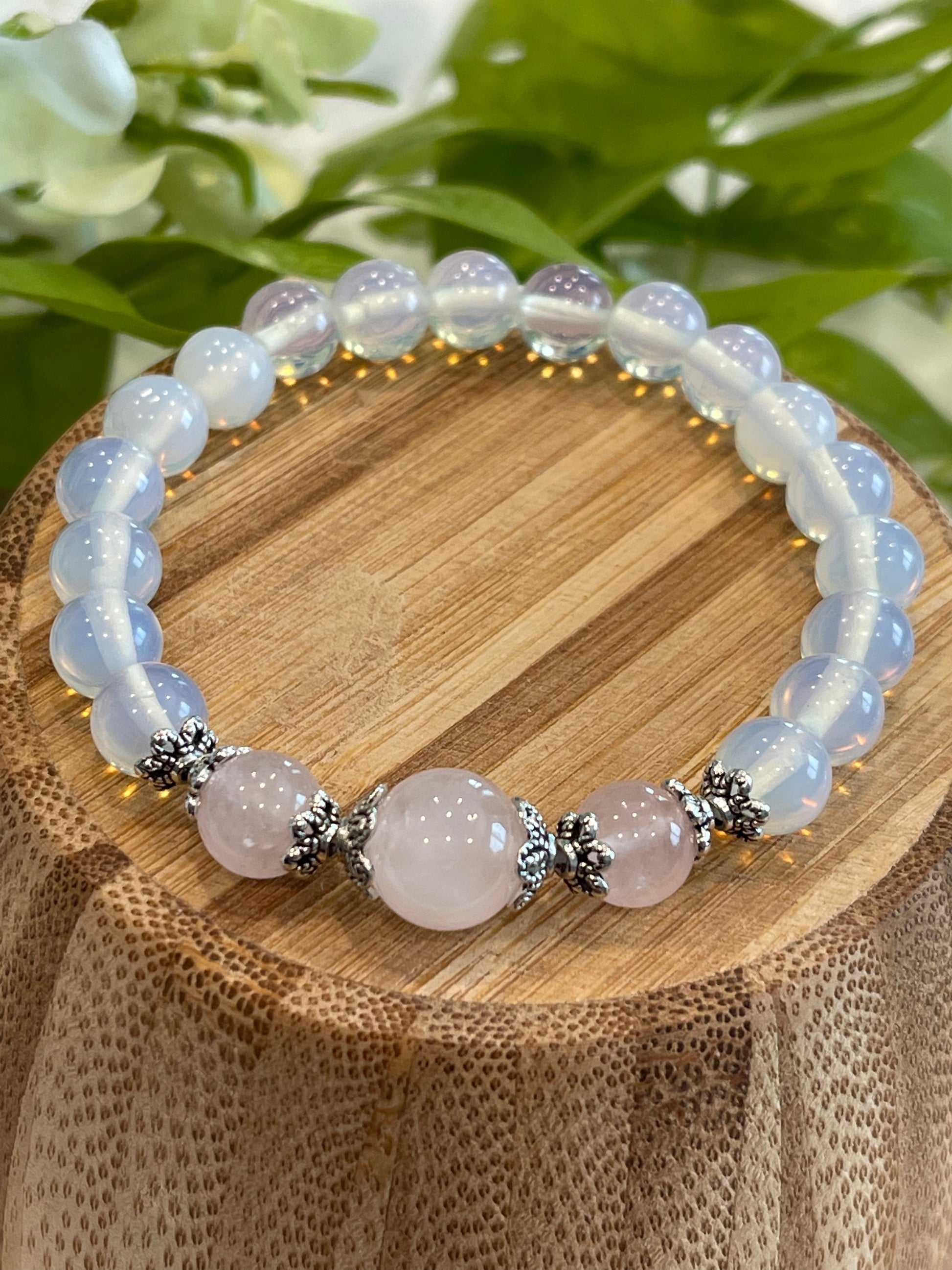 Opalite and rose quartz are two crystals that are associated with different healing properties. Here are some commonly attributed healing benefits for each crystal: