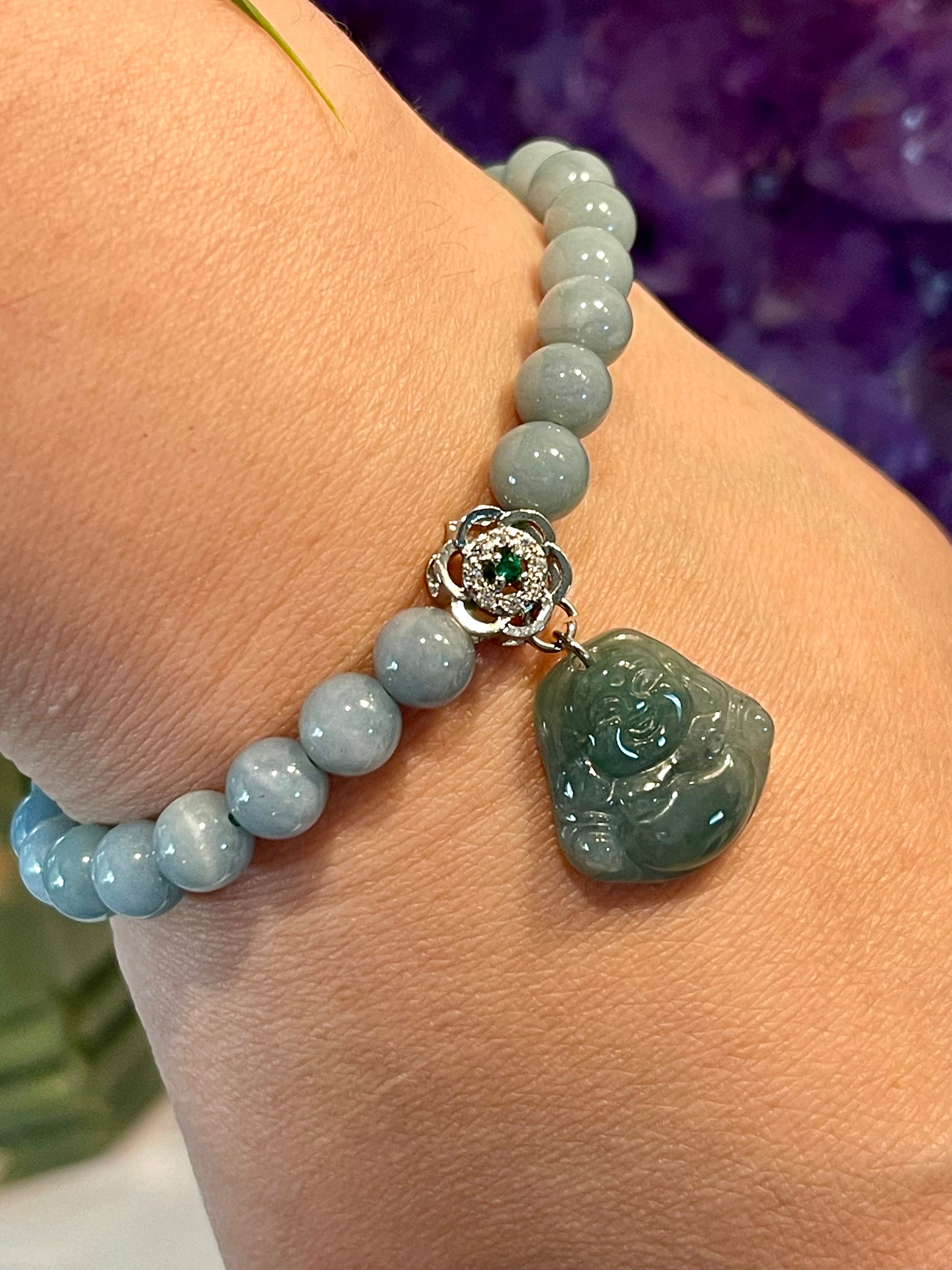 Happy Buddha, Blue Water Jade: Good Fortune, Emotional Well Being, Peace and Serenity