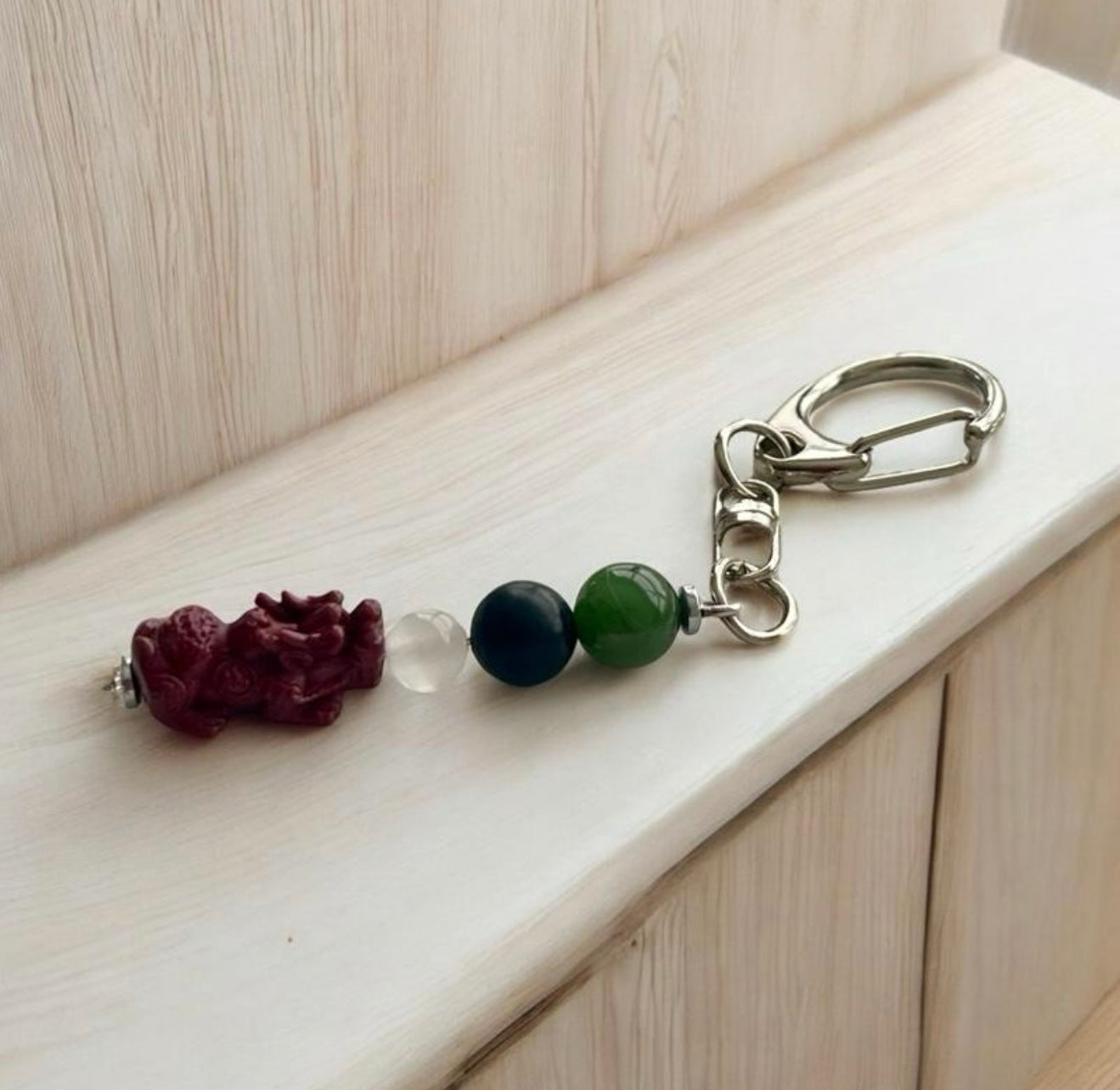 Pixiu Cinnabar, Selenite, Black Jade, Green Jade | Wealth and Protection Energy Keychain